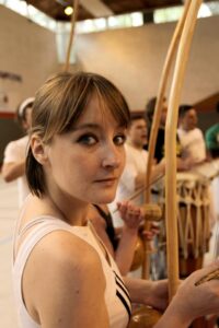 « Je pratique la capoeira depuis 2008 au sein de l’école C.E.C.I.CA. J’ai commencé. à enseigner aux enfants en 2014 à Versailles (78) au sein de l’association Macaco. Aujourd’hui c’est à Meudon-la-Forêt (92) au sein de l’association Ginga no corpo que j’enseigne avec le Professor Hercules cet art martial qui a bouleversé ma vie. Culture, musique, traditions, partage, sont tous pour moi synonyme de Capoeira. »